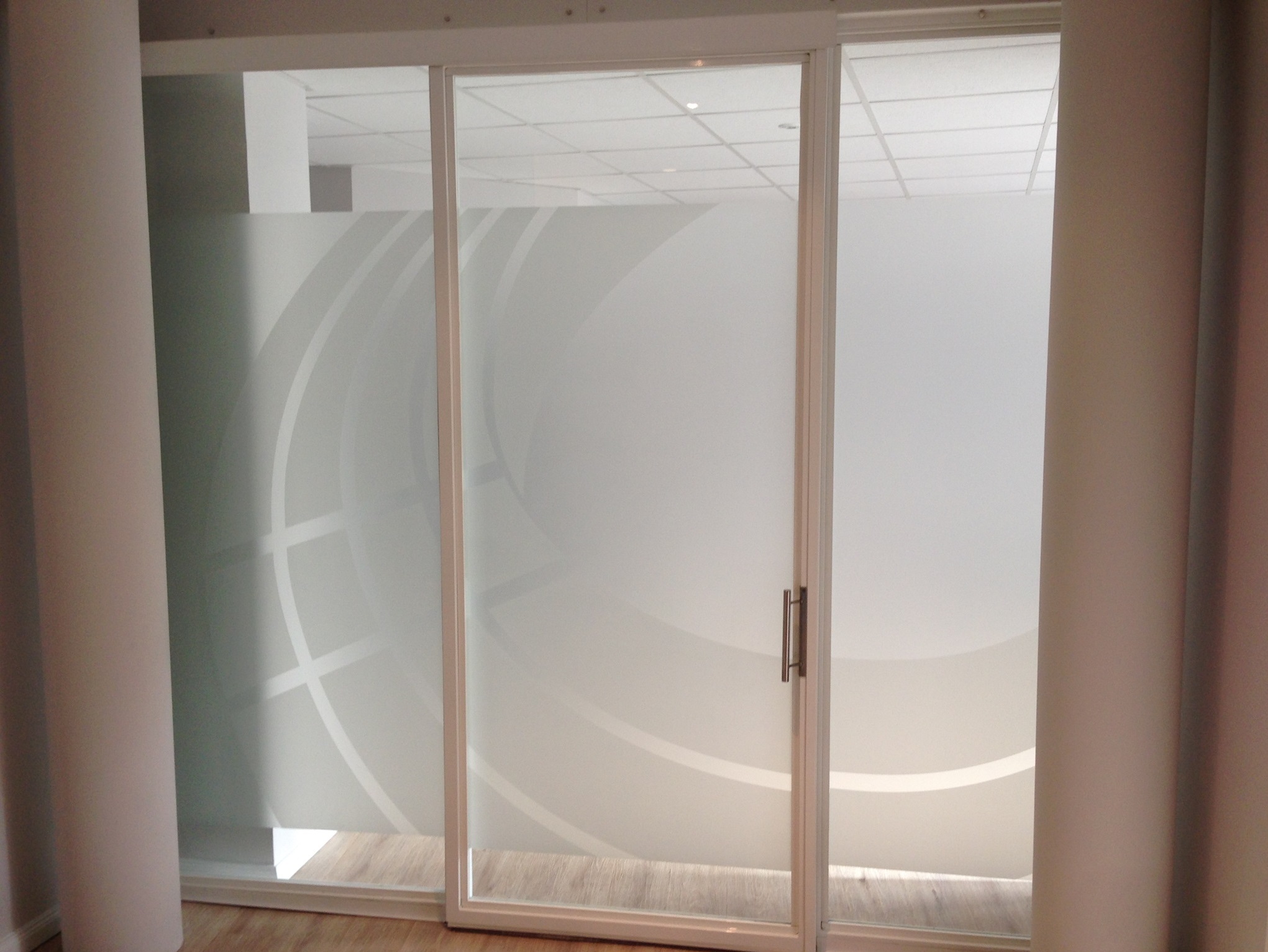 Jetzt Glasdekorfolie anfragenSelbstklebende Folie, die Glas mattiert oder dekoriert. Sie bietet Sichtschutz und wirkt edel.
